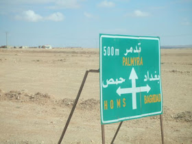 沿道に見えた看板にはパルミラまで1kmとあった。そこをすぎてすぐにバスはレストランの前の駐車場に停車。このバスはもっと東に行くバスのため、パルミラに行きたい人はここで降りろとのことらしい。