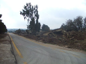 沿道はひたすら土漠で草がちょろっと生えている以外は緑がない。こんもりとした山もベージュ色のみ。しかし、時々突然オリーブ畑や植林されている一帯が現れる。人家も少なく、まちも見ない。ベドウィンなのか難民なのか、テントが数棟まとまって張られている場所もあったりする。