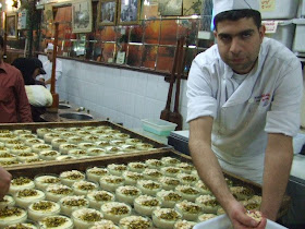 ぼくは2種のピザを注文。店の人はガラスケースから一度は焼いているそれを取り出し、店内奥にある焼き窯に入れ温めてくれる。2つ合わせて値段は35シリアポンド。